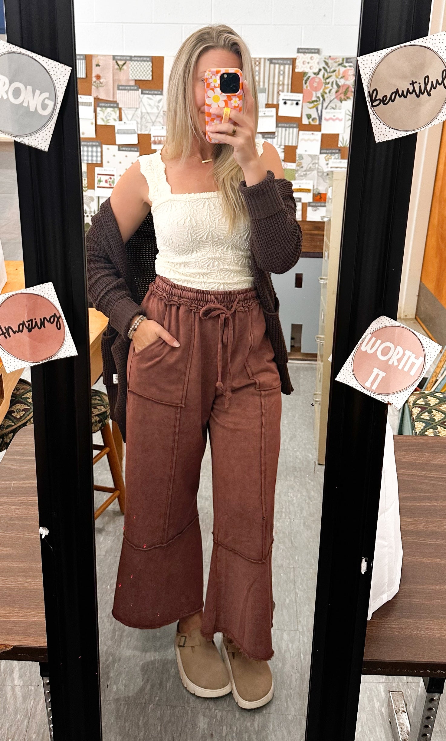 These pants are stretchy and 100% cotton. The fit is true to size.